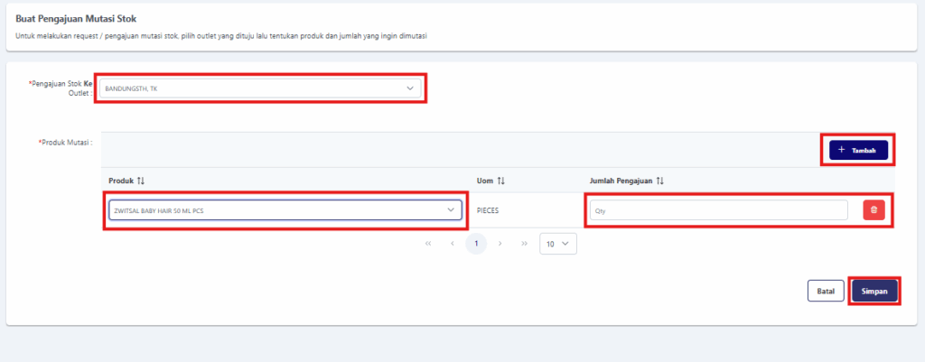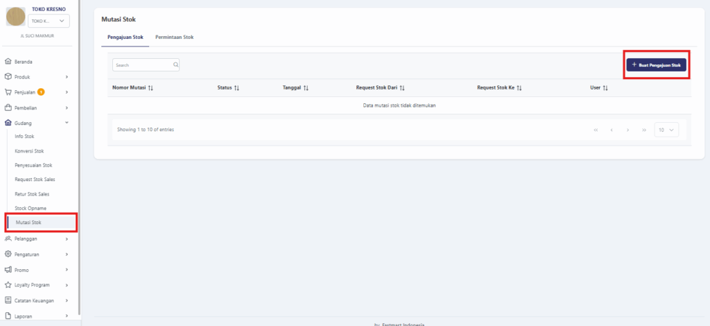 - Klik Buat Pengajuan Stok untuk memulai proses mutasi stok
